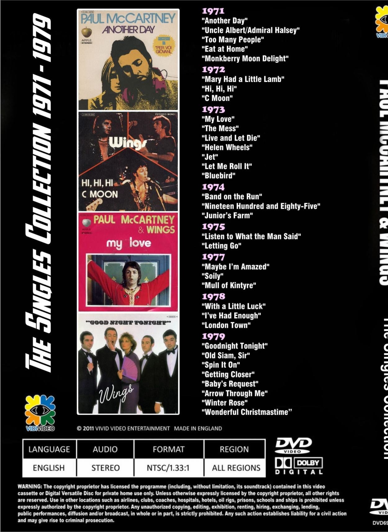 PAUL MCCARTNEY & WINGS The Singles Collection 1971 – 1979 DVD