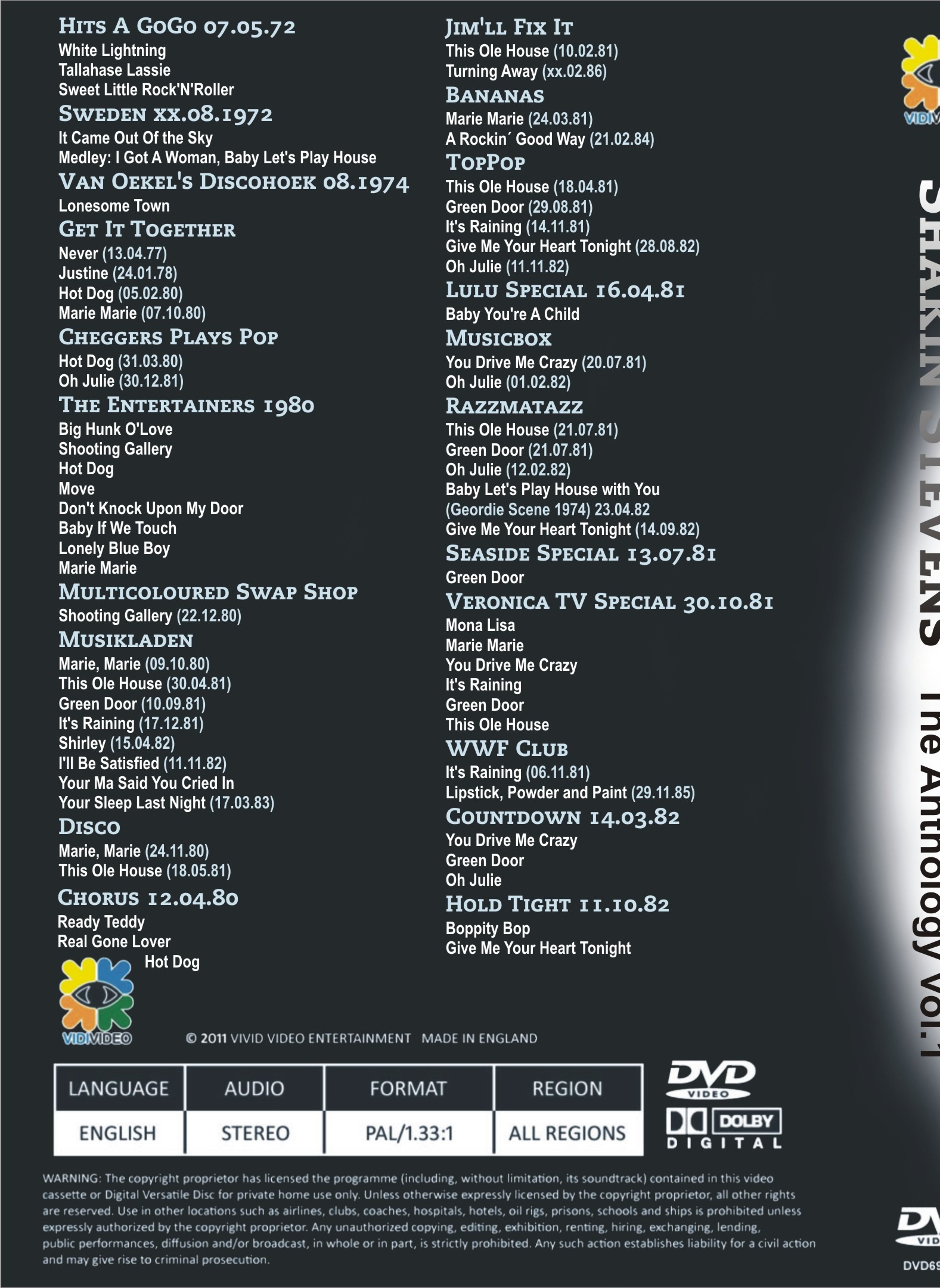 Shakin Stevens Video Anthology Volume 1 DVD